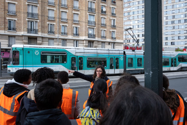 En plus de cet atelier pédagogique et ludique en classe, une visite guidée du tracé en cours de métamorphose a été organisée avec l’une des classes. À cette occasion, Mathilde Dupas a commenté la nature des travaux en cours à proximité d’un chantier concessionnaire jusqu’à la station Asnières-Quatre-Routes mise en service en 2019 dans le cadre de la phase 1.